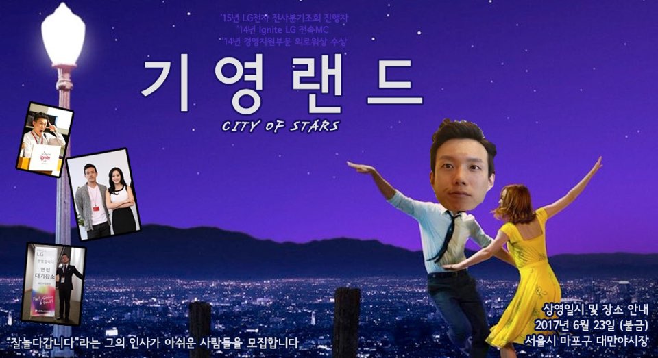 퇴사한 친구의 주변 지인들이 마련한 파티 초대장이었습니다. 퇴사의 아쉬움을 달래는 모임이죠. 초대장은 영화 포스터를 패러디해서 만들었습니다. 부럽기도 하고 멋지다는 생각이 들었습니다.